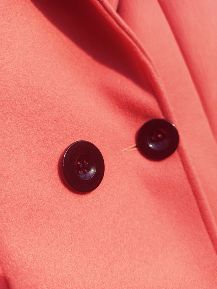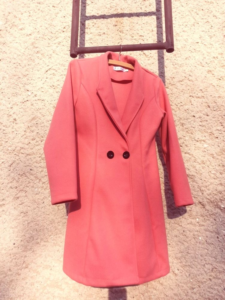 Kabát krásnej farby z flaušovej látky. Nebol nosený je nový.