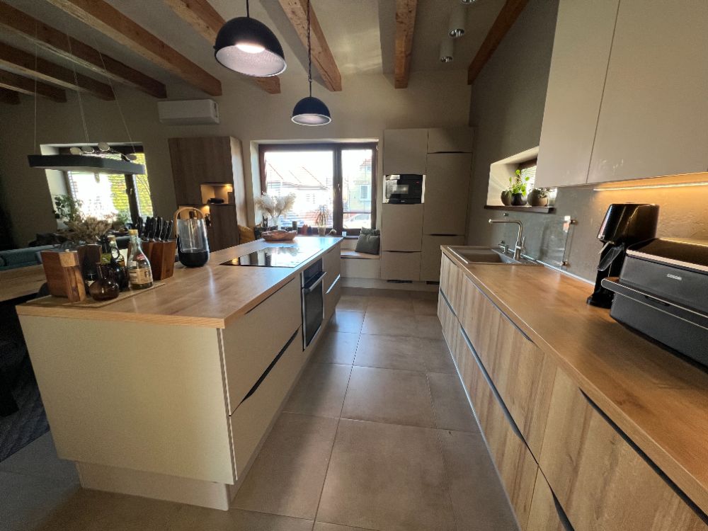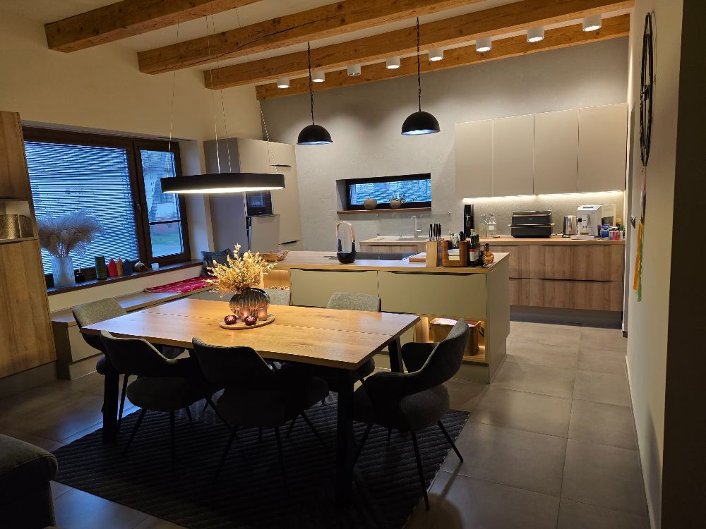 • kuchyňa prepojená s obývačkou s východom na