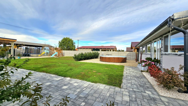 Zainvestujte do tejto krásnej a veľkorysej novostavby moderného bungalovu s úžitkovou plochou 209 m2, na krásne upravenom, slnečnom a udržiavanom pozemku s celkovou rozlohou 1014m2 v obci Jesenské, okres Rimavská Sobota. Bungalov je postavený v novej, okrajovej časti obce, zastavanej novostavbami s výbornými susedmi.