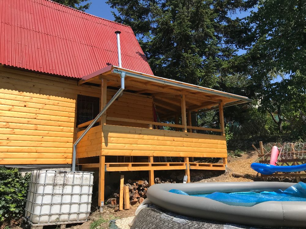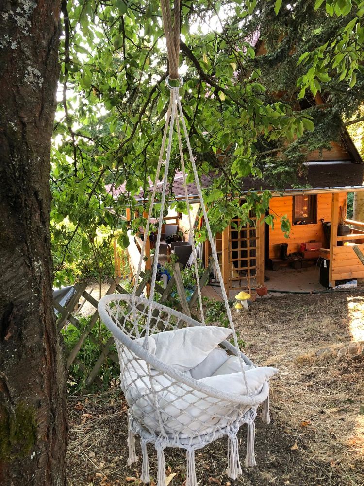 Z ovocného sadu si môžete nazbierať jablká, čerešne, slivky, či hrozno a priamo na pozemku v hĺbke cca 4-5 m je aj podzemný prameň, stačí si len vykopať studňu a môžete mať vlastný zdroj vody, ktorý je momentálne riešený buď zberom dažďovej vody do 2 tisíclitrových nádrží alebo čerpadlom z neďalekého potoka. Chata je napojená na elektrické vedenie, takže v noci nezostanete potme, a vo vnútri vám je k dispozícii aj suchý záchod s vetraním. No a počas celého leta môžete relaxovať vo vyhrievanej vírivke alebo sa slniť na lehátku a užívať si pohodu.