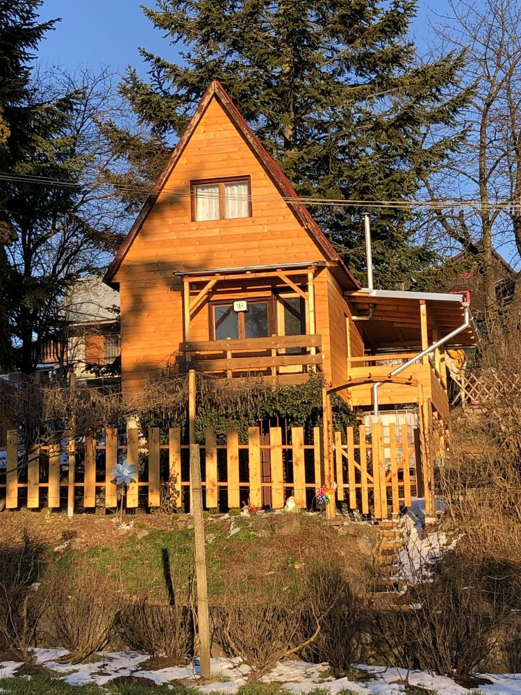 Dvojposchodová chata s 2 balkónmi a terasou, podpivničená, zateplená a obložená novým tatranským profilom. Obkolesená krásnou prírodou s tatranským nádychom vďaka 3 urasteným jedliam. V zime oceníte sálavé teplo z nových kachlí, v lete vôňu čerstvo uvarenej kávy na terase pri vychádzajúcom slnku.