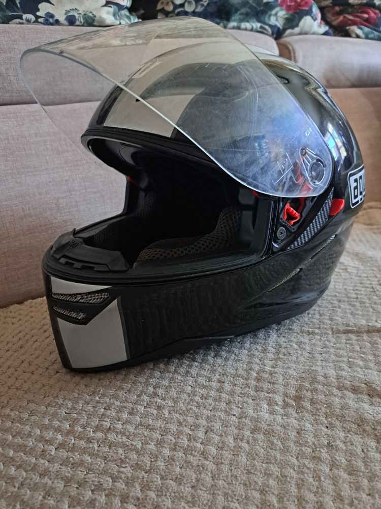 Predám motocyklovú prilbu AGV. Prilba má sklápaciu slnečnú clonu. Je v dobrom zachovalom stave. Cena 50 euro. T.č. 0910 996161.